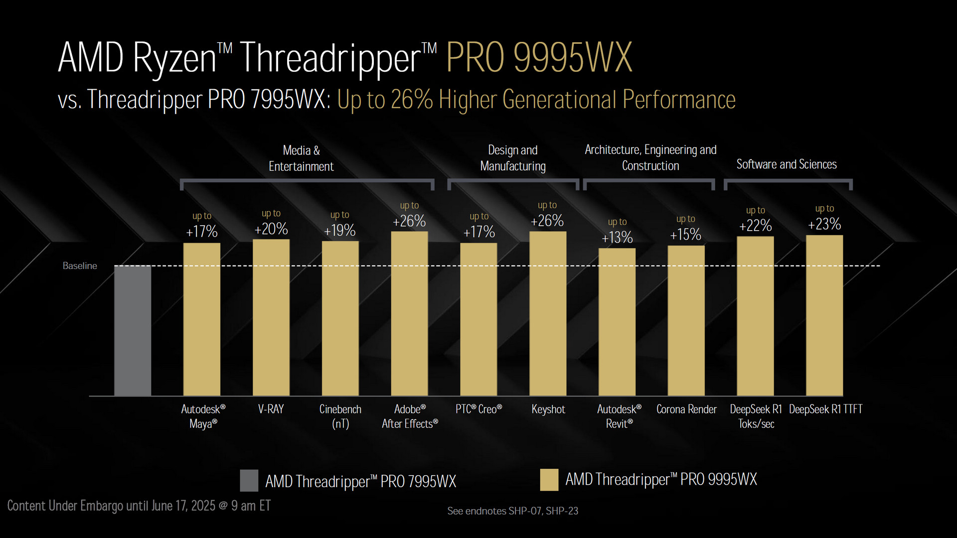 效能方面 Ryzen Threadripper PRO 9995WX 相比上一代 7995WX 有著 26% 的整體效能提升,橫跨多媒體、設計製造、結構工程、軟體與科學等應用。