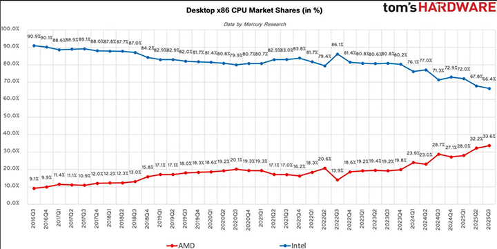 雖然AMD一直在進步,但是Intel基本盤亦是非常穩的,即使桌上型處理器出現了種種問題,但此部分市場並不算大,Ryzen X3D系列全吃下亦影響不了大局,尤其是出貨量佔大宗的筆電市場。