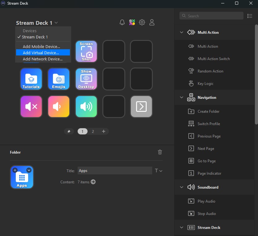 軟體則要使用 Stream Deck 7.0 Beta 或最新版本,就可以在裝置選項中找到「Add Virtual Device」新增虛擬 VSD。