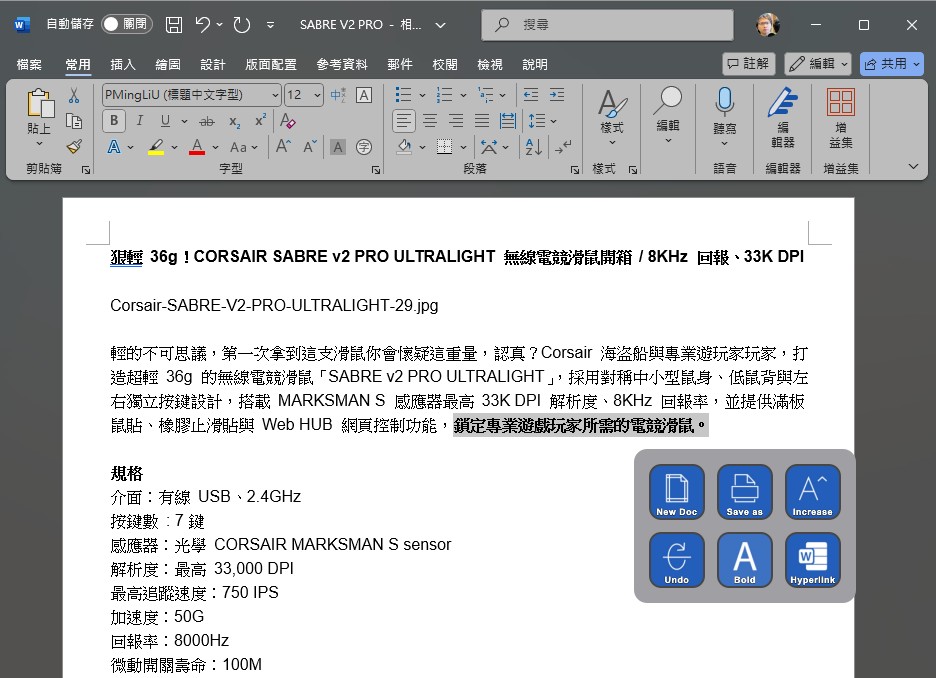 像是 Word 的 VSD 功能自訂開啟新聞鍵、儲存、加大字體、復原、粗體、超連結等,當然這些功能都可隨需求自行調整。
