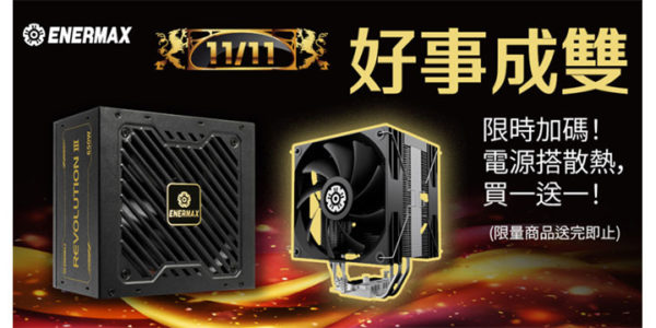 ENERMAX 保銳推出入門套裝,即日起至12/31凡買金牌電源金靜冰核系列 REVOLUTION III 650W,即送四熱管單塔空冷散熱器ETS-T41,電源、散熱一次到位!即日起全台各大經銷通路與電商平台均有販售,數量有限售完為止,敬請把握!