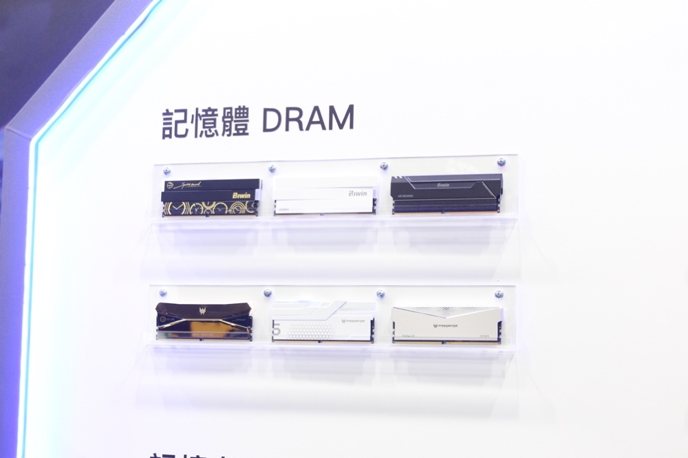 記憶體系列展出了Black Opal DW100 DDR5 RGB、Black Opal DW100 OC Lab Gold Edition,還有與ACER合作推出的Predator Hera RGB DDR5與Predator Vesta II RGB DDR5