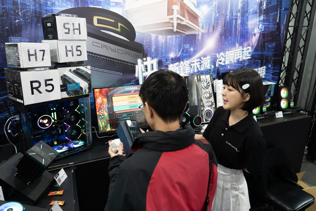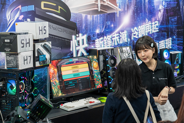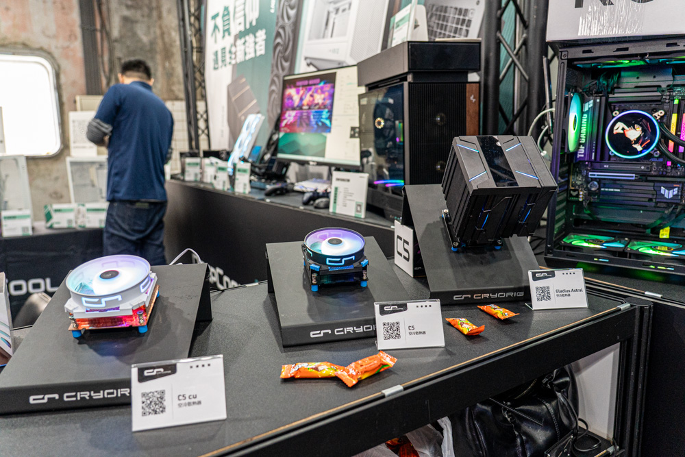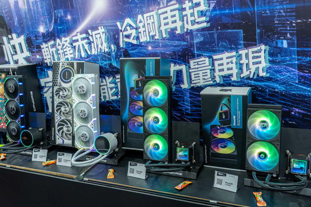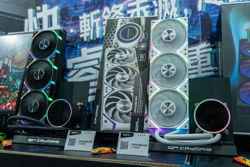 作為散熱專家,水冷自然不可少,現場帶來了CRCY 360旗艦 AIO水冷的黑白雙色,冷頭搭載 2.8 吋高解析 LCD 全彩螢幕 與 2500 RPM,玩家經由C-FX自定義 GIF 或即時監控系統數據,並享有原廠 6 年漏液保固。
