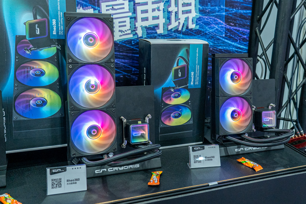 另一款是較親民Rheo 360 / 240 水冷,共兩種冷排規格展出,有著兼具美感與散熱效能的CP風範,冷頭具備2700 RPM轉速,加大純銅底座提升解熱能力,並與風扇皆具備無限鏡面燈效。