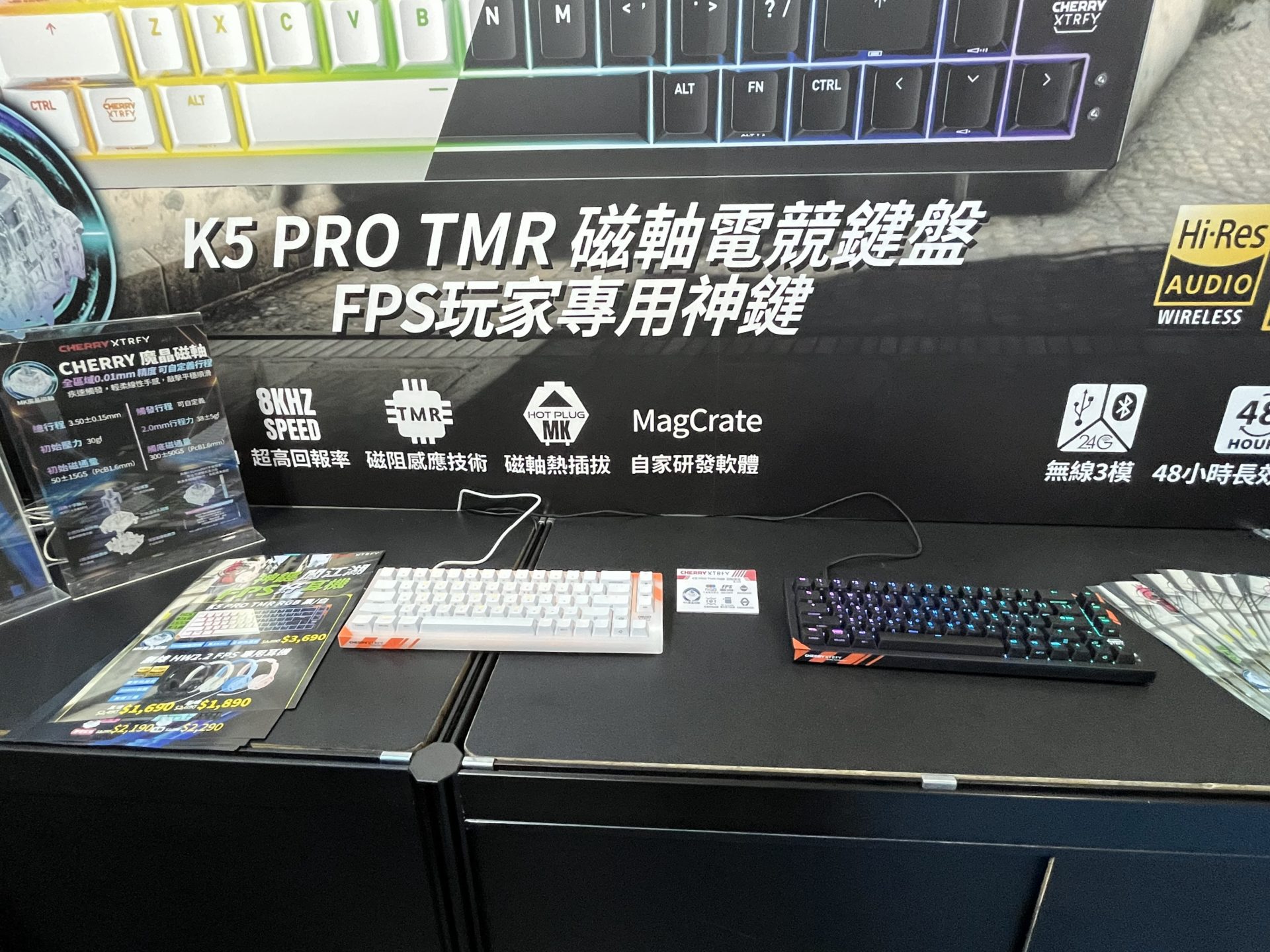 本次 CHERRY 攤位主打 FPS 射擊玩家取向,現場展示包含鍵盤、滑鼠與耳機等多款電競周邊設備。其中最受矚目的,莫過於定位為射擊遊戲專用的 K5 PRO TMR RGB 鍵盤。該款鍵盤強調高速回應與穩定輸入表現,並導入 TMR 磁阻感測技術,搭配 8K 回報率 與 魔晶磁軸 設計,大幅降低輸入延遲並提升觸發精準度,讓玩家在高強度 FPS 對戰中能更即時地反應操作,也因此吸引不少射擊遊戲玩家現場試打體驗。