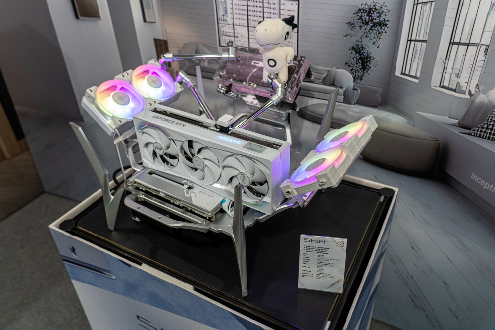 Shift 則為開放式機架,採用全鋁框打造而成,支援 E-ATX 與背插主機板、7 PCIe擴充、支援最長 350mm 顯示卡,以及最多 9 顆 120mm 風扇 與 3 個 360mm 冷排的安裝空間。