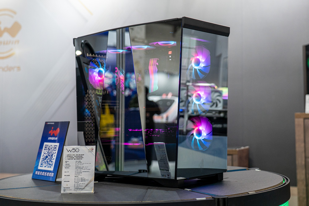 此外,還有於 COMPUTEX 2025話題焦點的神祕機殼 / 架 W50與Shift;而W50機殼從外觀上,可以看出與COMPUTEX 2025上有些許不同,改良頂部上蓋的前後把手;有著以W字型的鏡面設計,採用三塊玻璃多角度進行拼接,使鏡面在視覺上呈現反射效果;支援ATX主機板、8 PCIe 擴充、最長 435mm 顯示卡,以及最多 9 顆 120mm 風扇、上方與側方 360mm水冷的安裝空間。