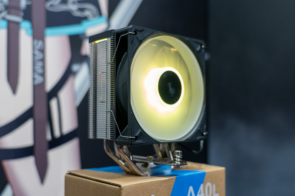 其中 A40L 空冷散熱器,則採用單塔結構設計,搭配 4 根熱導管的散熱底座直觸CPU,並提供 1 顆120mm ARGB導流環風扇,以及混和鰭片設計,有著高達 TDP 240W 解熱能力。