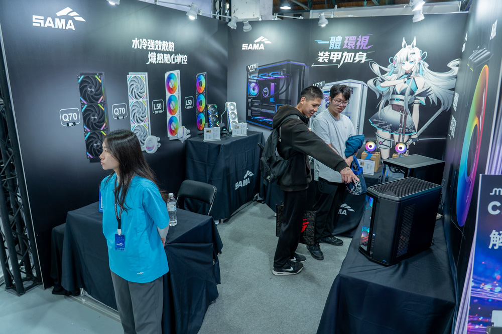 機殼百科全書、背插式機殼先驅 SAMA 先馬 攜手總代理 視博通 強勢登陸 GAMFORCE 2025 電競嘉年華!這次 SAMA 不僅帶來了全球首發的V71 及 V62S 電競機殼,並於現場展示了多種有料款式,更有新穎「磁吸螢幕」技術的Q70水冷,以及極致散熱方案,還設有打卡互動送好禮活動,讓玩家能享受CP回饋又能參觀新產品的雙重體驗。