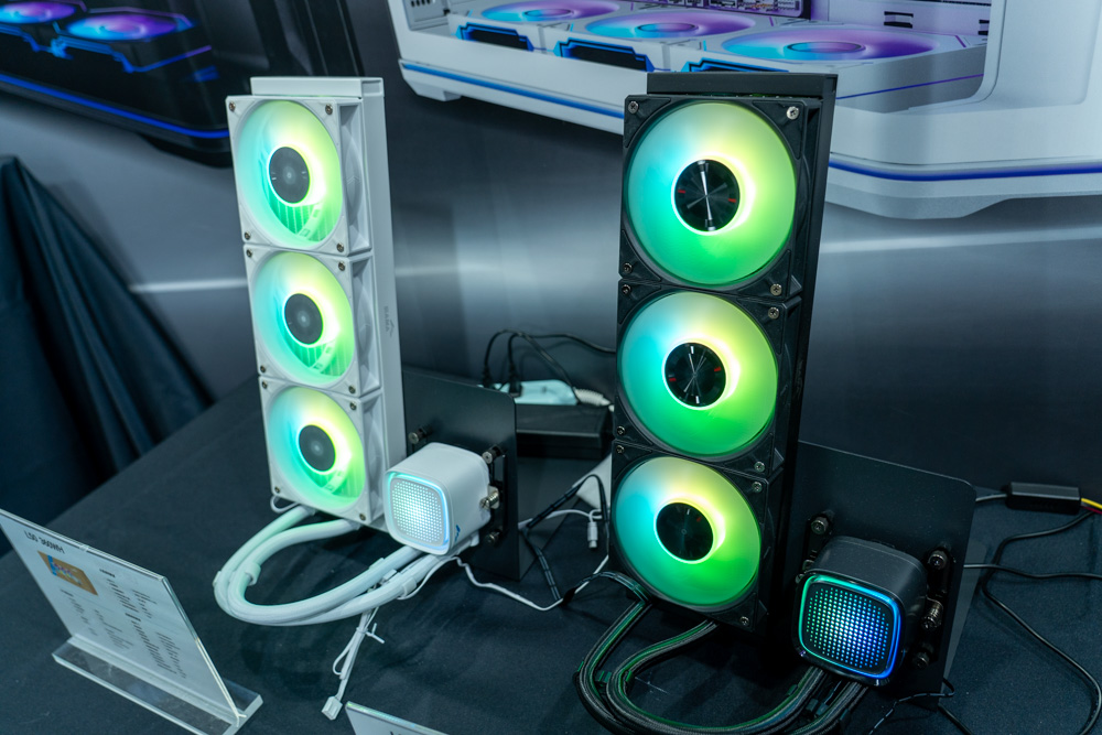 水冷展示區,則有新穎設計 Q70 系列 與 L50 360 系列等水冷坐鎮,兩者系列分有 BK / WH 黑白兩色款式可選。