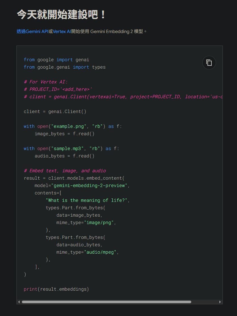 Google 更同步提供式碼範例與互動式筆記,協助開發者快速建構新一代多模態 AI 應用。