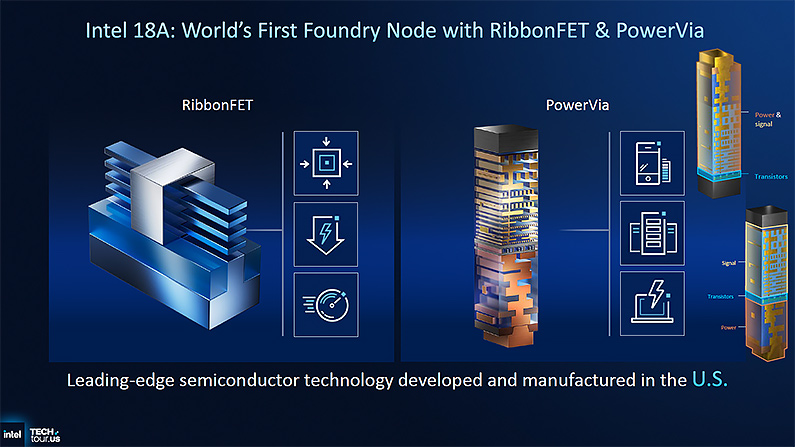 Intel 18A 製程節點有 RibbonFET 電晶體架構與 PowerVia 等多項創新