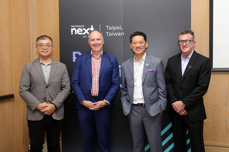 (左起)一卡通公司技術副總經理闕大順、Nutanix 亞太及日本地區副總裁暨總經理 Jay Tuseth、台灣總經理劉國龍、全球技術資深副總裁 Mike Phelan