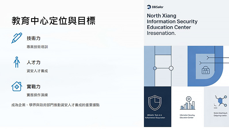 企業資安防護工具 DBSAFER 與亞洲總代理威彼資訊、臺灣代理商智雲科技及經銷商北祥科技服務共同成立資安教育中心,為資安人才教育訓練與實戰演練兼具的專業基地。