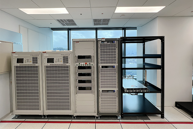 AI 基礎建設硬體研發中心設有多間實驗室,此為電源實驗室的一部分量測設備