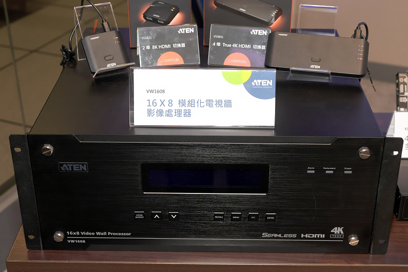 即將於 12月推出的精巧版電視牆影像處理器系列 (VW1608),不僅延續旗艦級系列(VW3620)的效能,機身更小巧,可提供靈活的視窗調整能力,讓使用者可自由配置多畫面版面、輕鬆掌控即時視訊內容,特別適用於大型演講廳等場所。
