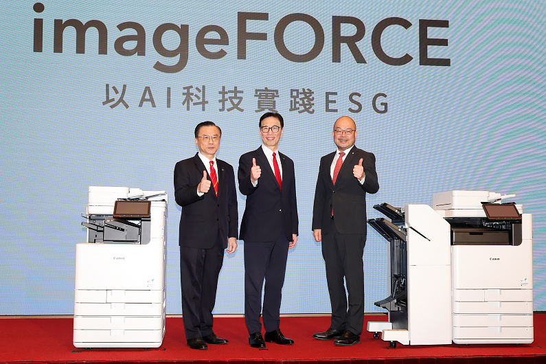 Canon 在臺灣推出新的 imageFORCE 智慧複合機系列,特別加入 AI 科技,不僅強化網路連接能力,具有更好的資安與可靠性,更能讓企業能在 EGS 路上盡心力。