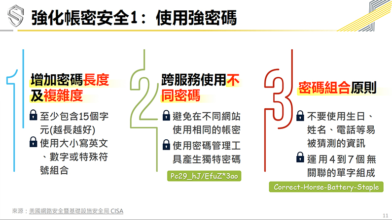 資安署呼籲全民強化帳號與密碼安全並落實三大防護原則