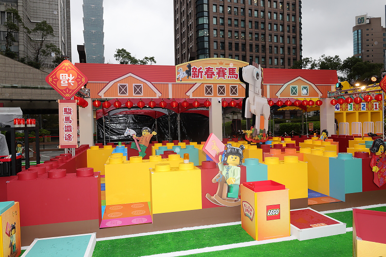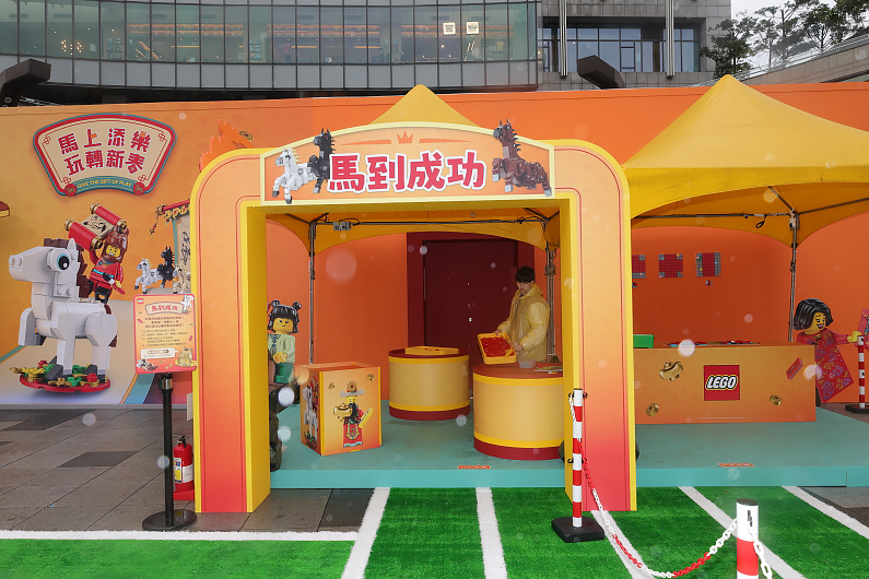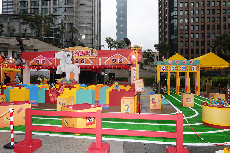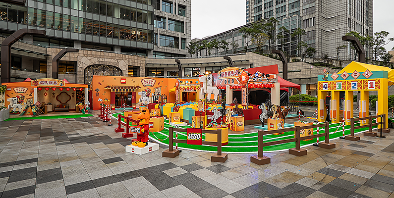 「樂高馬上添樂 玩轉新春」從1月23日至2月22日於統一時代百貨台北店二樓夢廣場舉辦,新的一年生肖屬馬,因此本次活動特別以「樂高新春賽馬場」為主題,打造三大趣味團體闖關遊戲,邀請大小朋友現場組隊共同體驗。