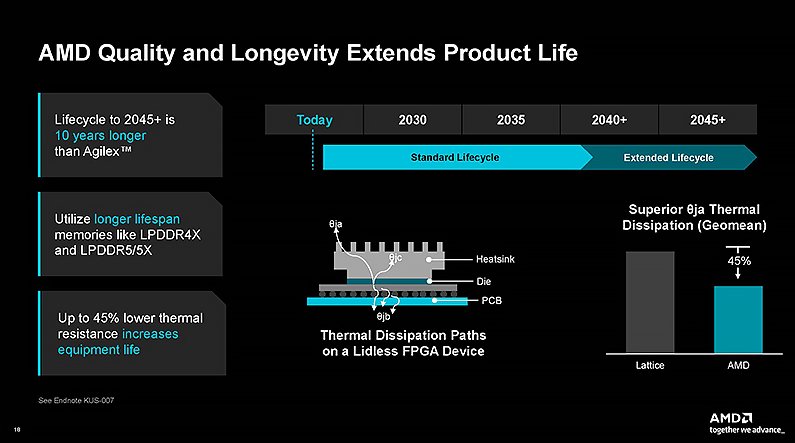 由於 Kintex UltraScale+ Gen 2 適用的產業很多都需長生命周期系統,不僅採用更好的散熱設計使得產品能以較低的溫度運作而具有更長的壽命,產品的供貨保證及標準生命周期更長,目前預計產品生命周期將會超過 2045年,超過競品10年。