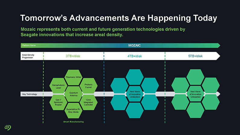 Seagate Exos 4U100(100顆硬碟) 和 Seagate Exos 4U74(74顆硬碟) 系統均提供先進的 SAS-4 JBOD 儲存解決方案,並利用 Seagate 的,Mozaic 創新技術,讓企業面對生成式 AI、分散式儲存架構和不斷變化的資料主權需求等大幅度資料成長時,可簡化營運、提高能源效率並提供可擴充的儲存功能。