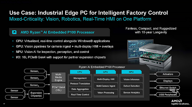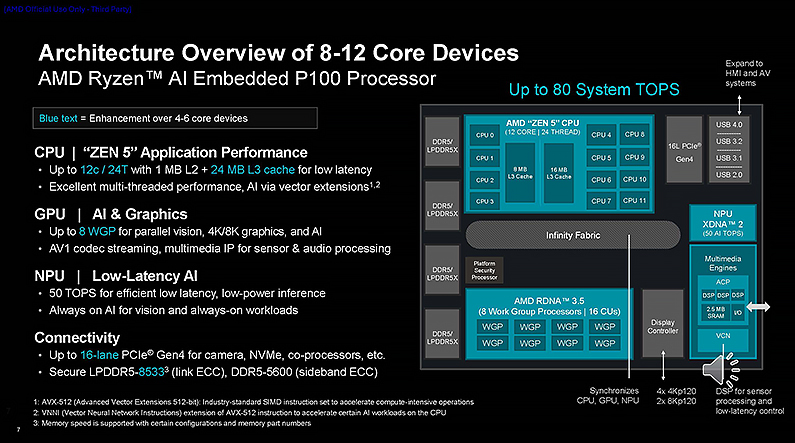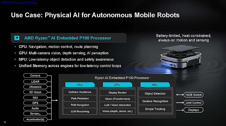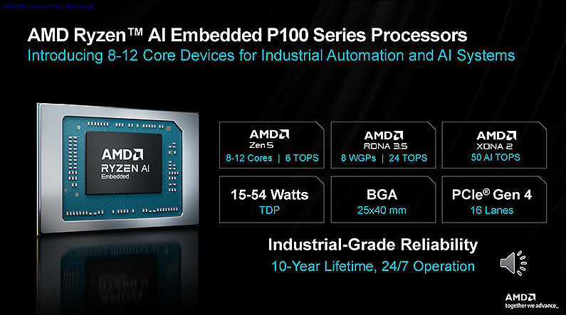 針對工廠自動化、行動機器人等應用,AMD 宣布在不久前才推出的 Ryzen AI P100 系列嵌入式處理器再加入新的產品,以多核心數提供更高的運算能力。