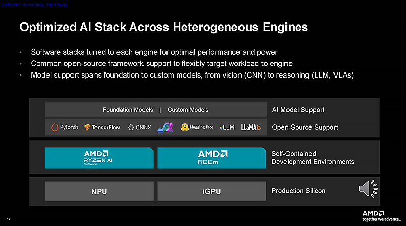 對開發者而言,新產品當然仍支援 AMD ROCm 開放軟體生態系統,可在依賴開源編譯器、執行環境與函式庫時使用標準 AI 框架,且無需重寫程式碼即可存取適用於嵌入式的模型。在程式開發層面,ROCm 軟體採用開放原始碼的 HIP(Heterogeneous-computing Interface for Portability),將 GPU 程式設計與硬體脫鉤,消除軟體堆疊和硬體之間的依賴。