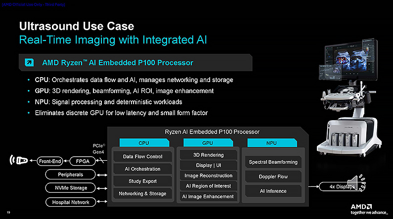 新處理器還可運用 U-Net、nnU-Net 與 MONAI 等模型,在邊緣端支援超音波、內視鏡、組織分類及腫瘤檢測等 3D 影像處理,或透過 MedSigLIP 加速從影像到報告的工作流程,並支援 Med-PaLM 2進行臨床推理與問答。醫療 OEM廠商能在可擴展、長生命周期的嵌入式平台上整合影像、AI分析與報告功能。