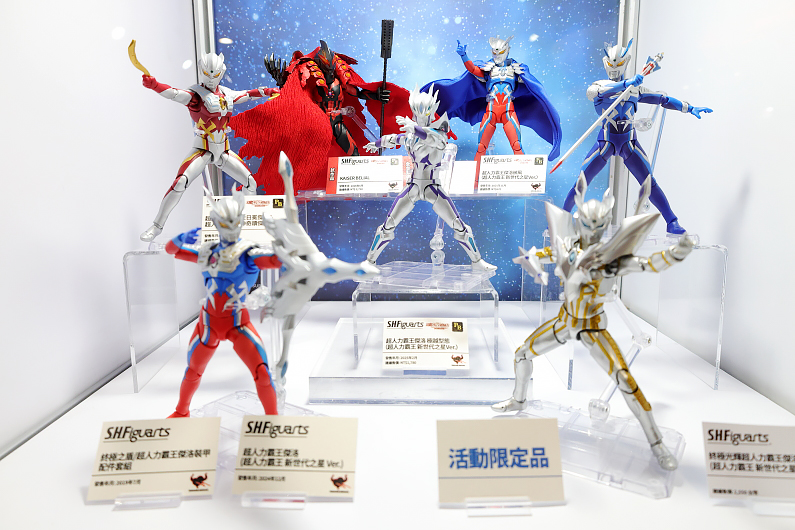 此次活動不僅有追求極致細節的「S.H.Figuarts」收藏系列,呈現超人力霸王劇中的各種經典場景以動態感的姿態,更一一展示大人小孩都喜愛、極具聲光效果且跨越世代的「變身道具」及豐富的超人力霸王軟膠系列。
