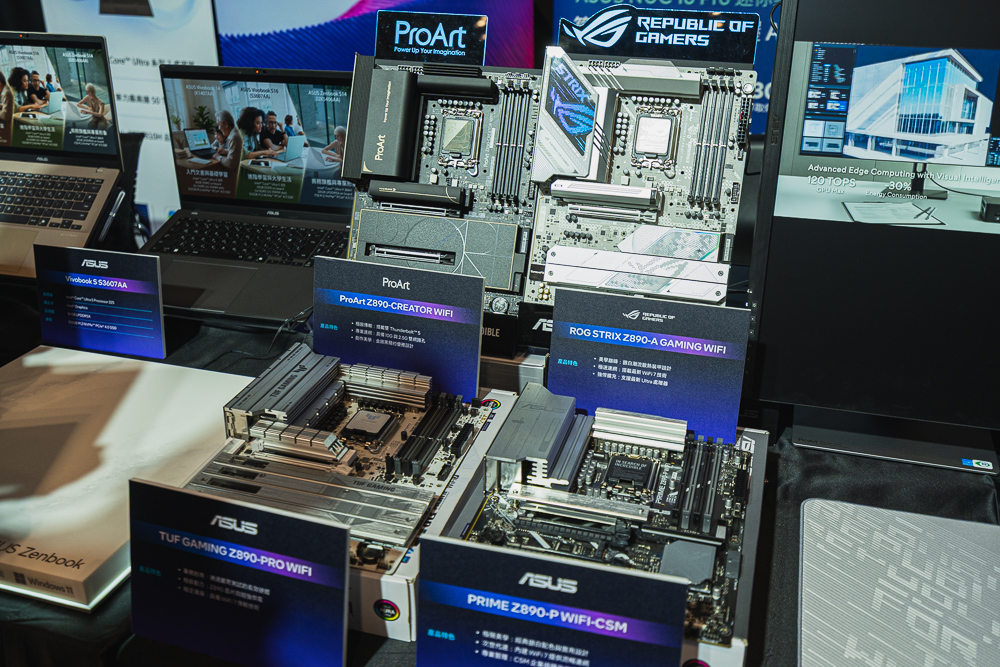 華碩攤位,則帶來 ROG Hyperion GR701 BTF (Powered by ASUS) 主機採用 Intel Core Ultra 270K Plus 處理器,並展示 Thunderbolt Share 一線串聯、傳輸的技術。還有著一系列 Z890 主機板:ROG STRIX Z890-F GAMING WIFI、ROG STRIX Z890-A GAMING WIFI、ROG STRIX B860-G GAMING WIFI、TUF GAMING Z890-PRO WIFI、PRIME Z890-P WIFI-CSM、ProArt Z890-CREATOR WIFI。