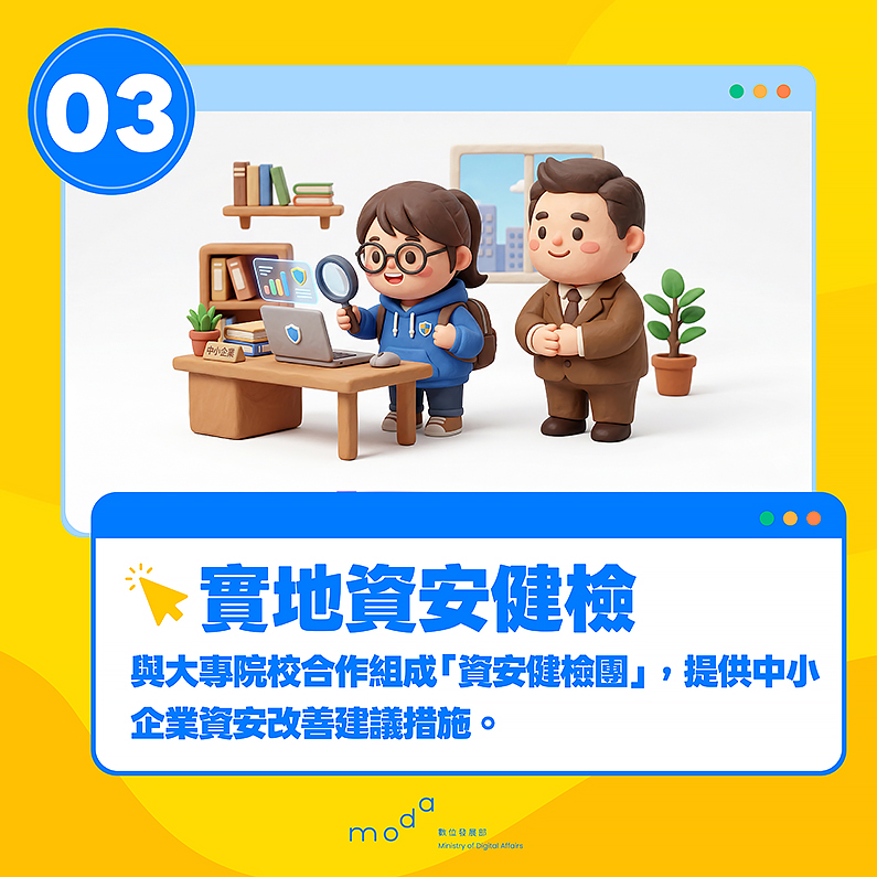 資安署表示,本次措施呼應第七期國家資通安全發展方案「全社會資安防禦」推動策略,透過具體輔導機制,讓中小企業更易於落實資安防護措施,引導中小企業從無到有推動資安。
