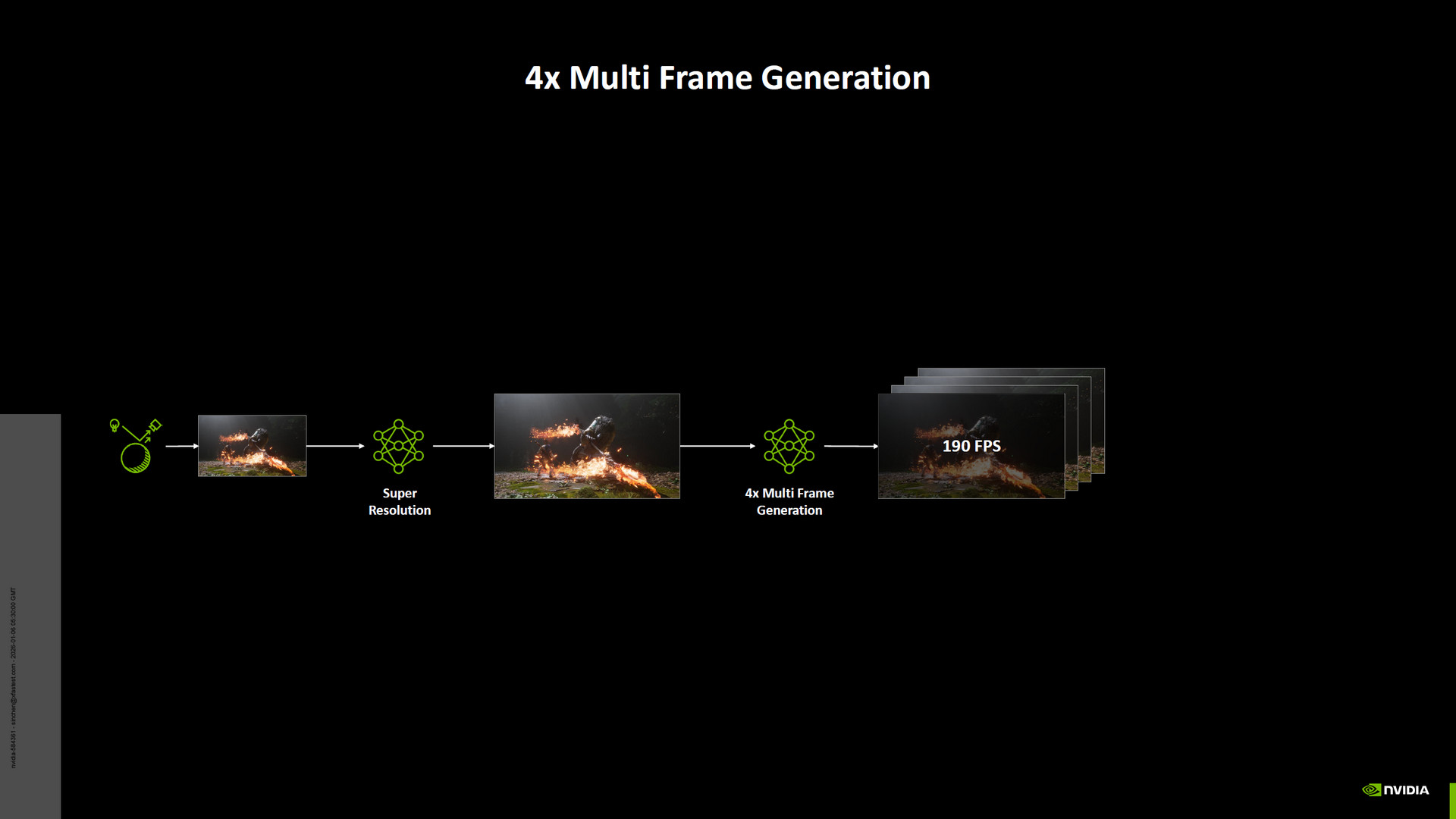 以 Multi Frame Generation 神經網路為前提,其實要 AI 多生成幾幀都不是問題,因為 Multi Frame Generation 生成時會參考遊戲的即時輸入與最終需要修正的畫格去生成,但即便生成過多過高的 FPS 影像對於遊戲玩家來說不見得有幫助。