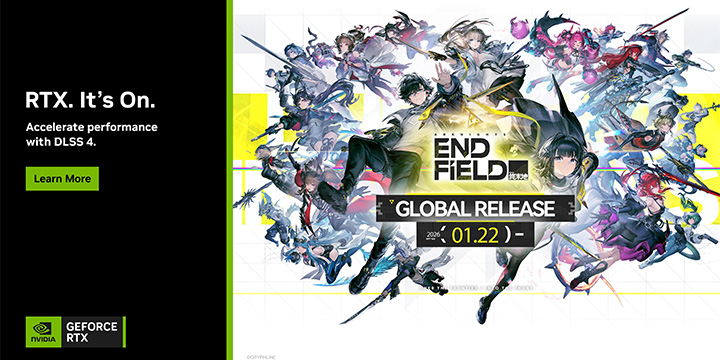 遊戲 PC 版首發即支援 NVIDIA DLSS 4 多畫格生成,採用 GeForce RTX 50 系列顯示卡的玩家可在遊戲中啟用 DLSS 4 和 DLSS 超解析度,在 4K 解析度並開啟最高設置時,可將《明日方舟:終末地》的平均畫格率提升至原來的 3 倍。