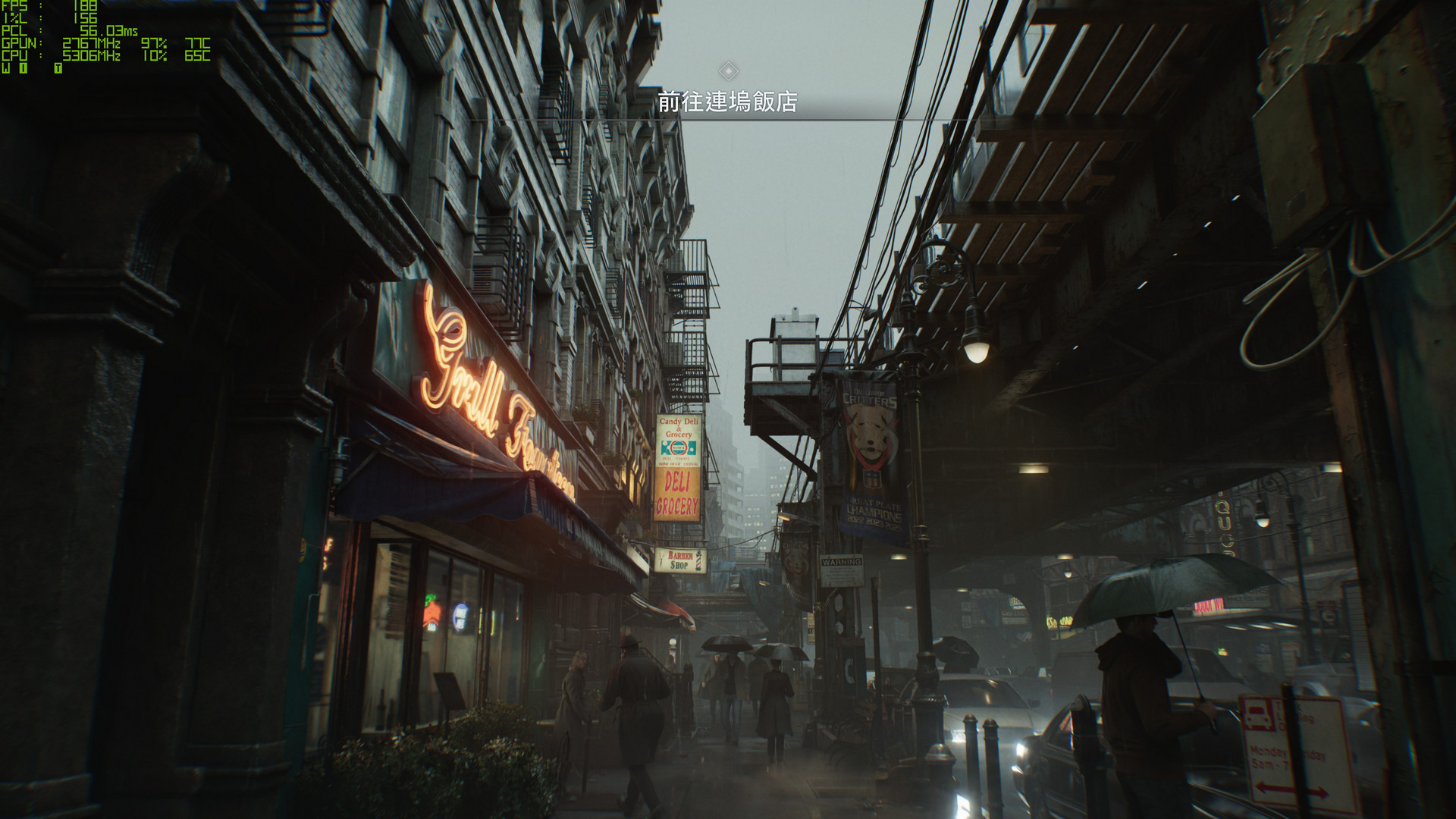 下面這三張圖片在 4K、圖形品質最高、DLSS4 SR 效能優先 / FG 4x 的設定下,差異在於第一張是「路徑追蹤」、第二張是「一般光線追蹤」、第三張是光線追蹤關閉。