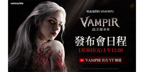 身為知名高品質遊戲開發與發行商的網石集團(Netmarble Corporation),公開旗下即將登場的大規模吸血鬼風格MMORPG《VAMPIR:血之繼承者》的第二支開發者影片。這段影片更詳細地介紹遊戲,並宣布將於1月30日在台北電玩展上進行官方展示。
