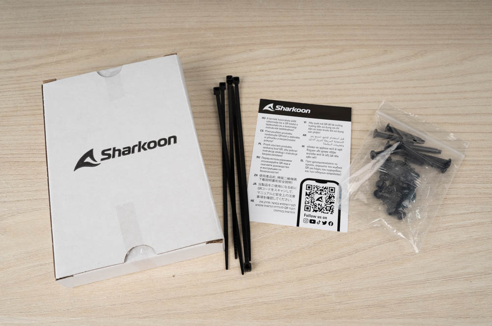 ↑ 機殼隨附螺絲包、束帶,以及電子化使用說明書,使用者只需掃描 QR Code 即可即時查看操作指南。