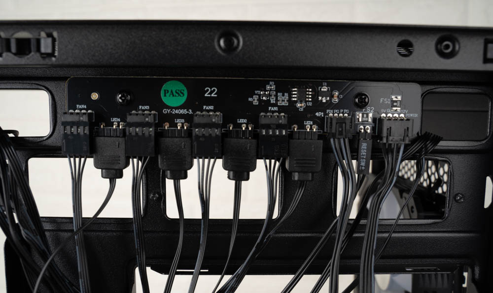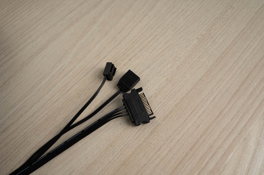 ↑ 機殼自帶的風扇控制器,支援轉速控制與RGB控制,並使用 SATA 電源線供電。