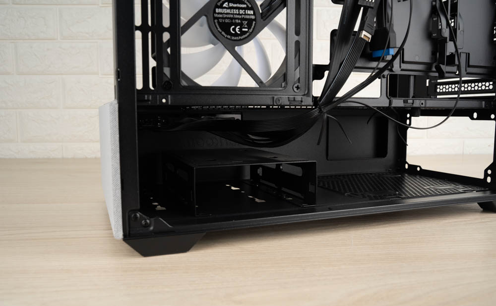 ↑ 拆下電源艙外面板後,可見浮雕設計的 Sharkoon LOGO。