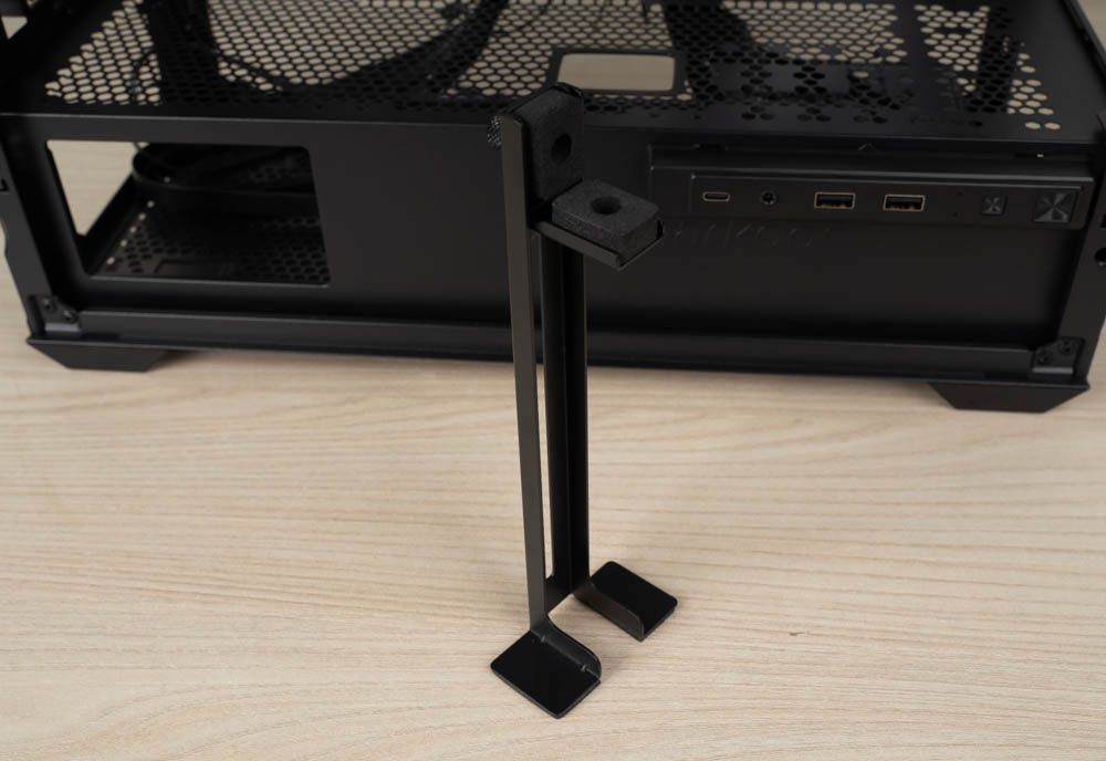 考量到現在顯示卡越來越大張,機殼內有附一個支撐架讓玩家使用,擺放、高低位置都能調整,Sharkoon旋剛的貼心值得稱讚。