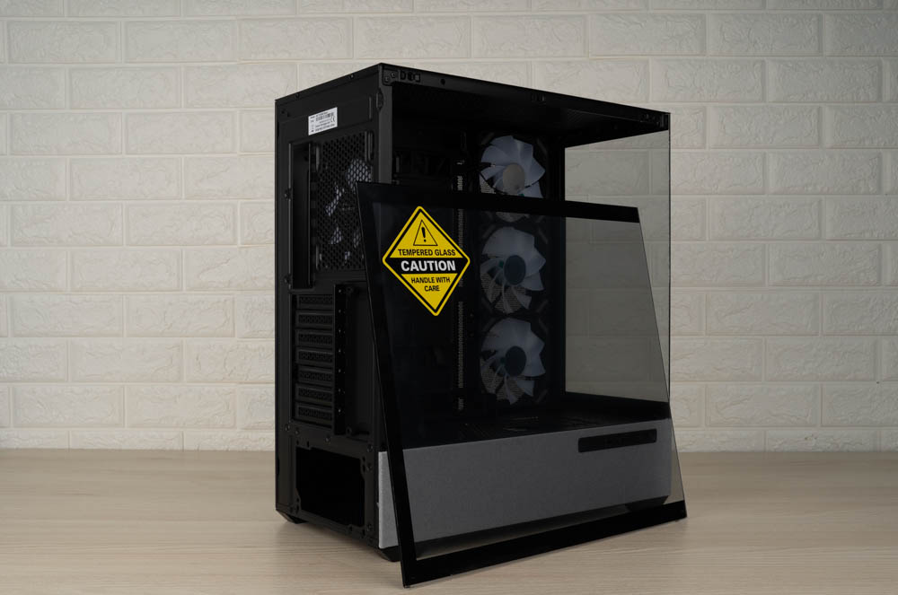 這款機殼的最大賣點在於雙面無 A 柱玻璃設計,帶來開闊的視覺效果。右側已預裝三顆反葉 12 公分無限鏡 ARGB 風扇,在提供側面進風的同時,也能欣賞到風扇正面的美觀造型。此外,左、右側及前面板均採快拆卡扣設計,方便玩家輕鬆拆裝。