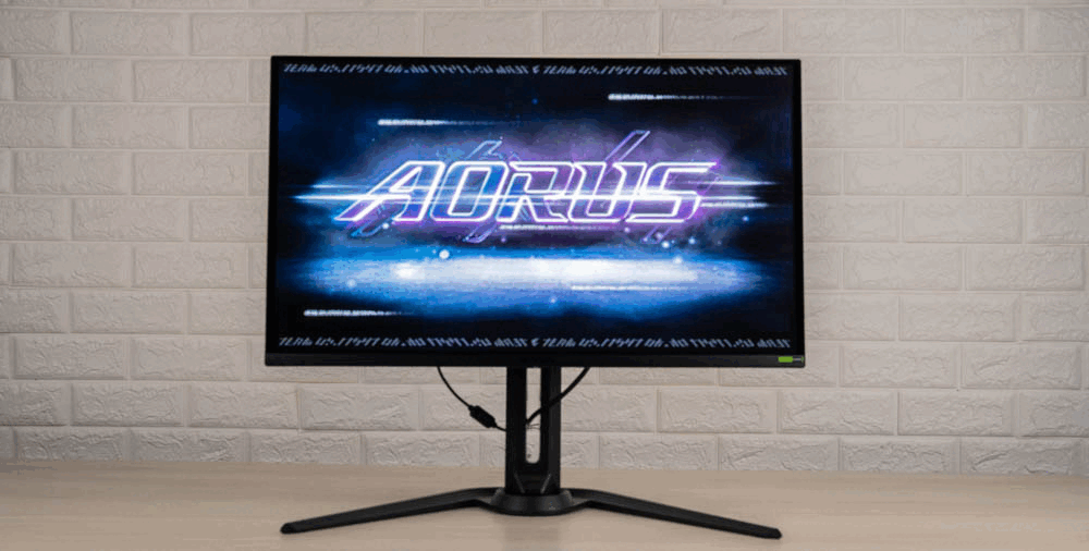 ↑ 螢幕後側上方設有一塊 AORUS 燈板,唯從背後觀看,燈效可能不易察覺。