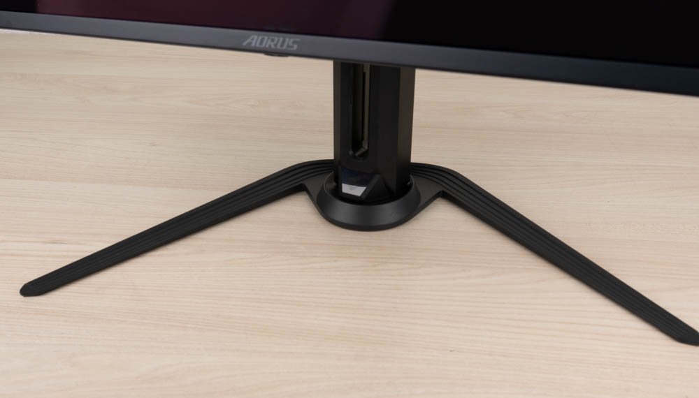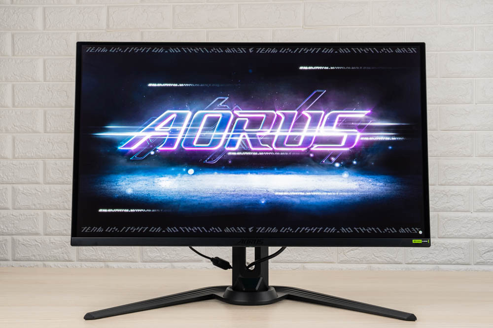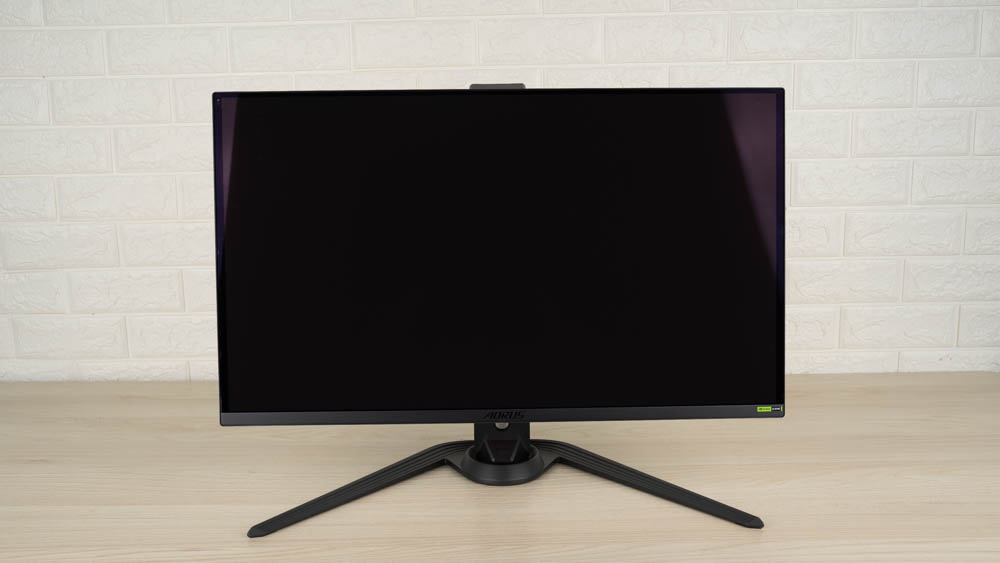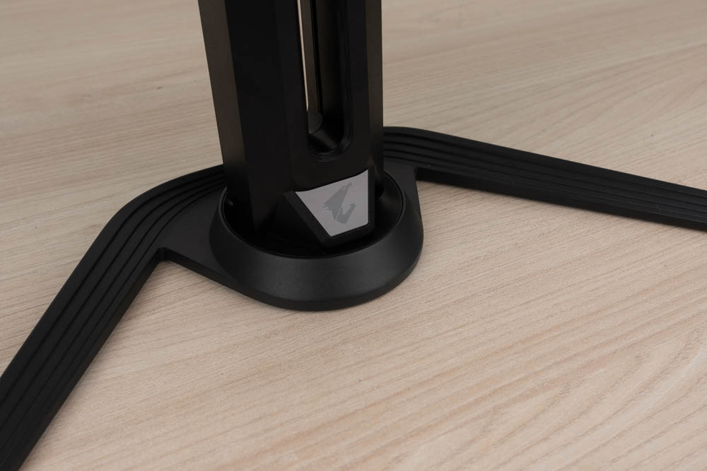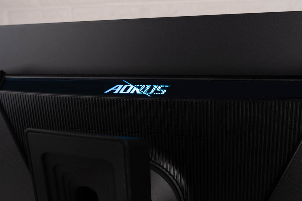 ↑ 螢幕後側上方設有一塊 AORUS 燈板,唯從背後觀看,燈效可能不易察覺。