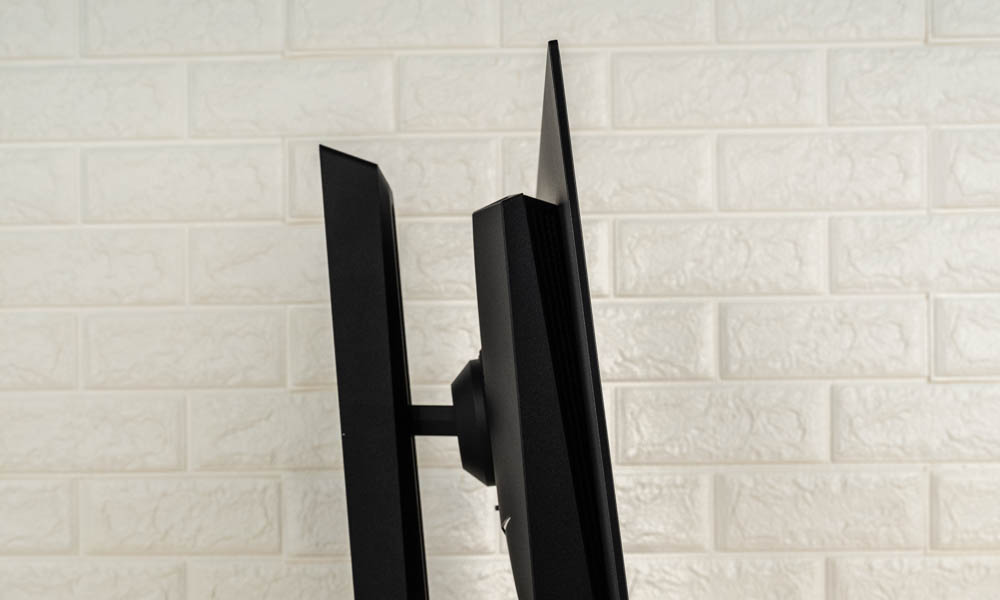 螢幕腳架支援高度調整 130mm,還能左右旋轉 ±20°,甚至是順時針旋轉九十度也不是問題。