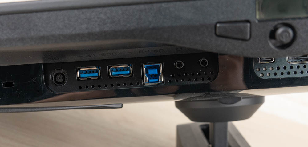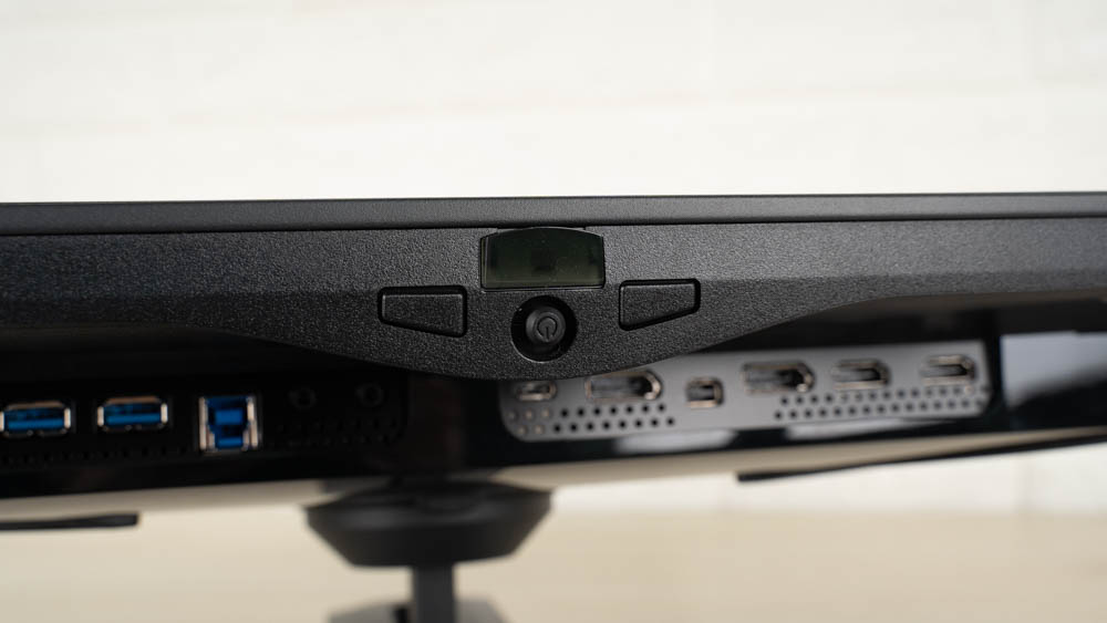 螢幕的 OSD 按鈕則藏在正面下巴的後方,有著 OSD 5向旋鈕與 2個快捷鍵。