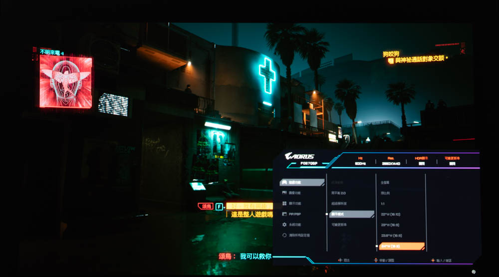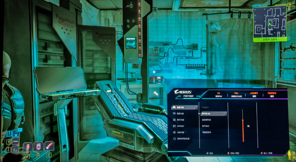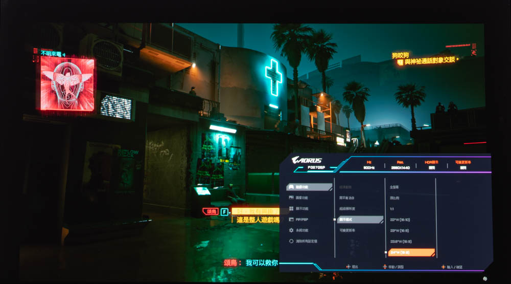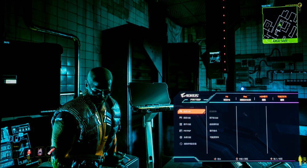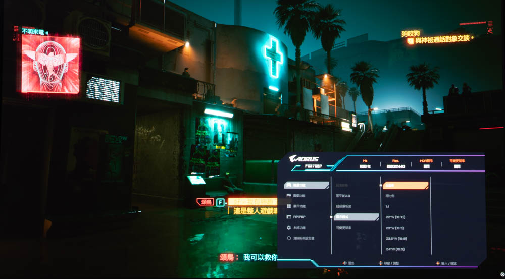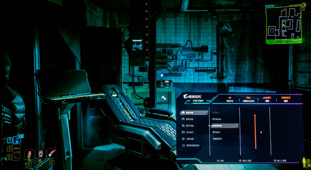 AORUS FO27Q5P 配備黑平衡 2.0 功能,可在 0~15 範圍內調整畫面亮度。開啟至最高設定時,甚至可以把《Cyberpunk 2077》中的不夜城點亮。對於有點不敢玩恐怖遊戲的玩家來說,這項功能相當實用,像再玩惡靈古堡系列時,開啟黑平衡 2.0 後,幽暗場景的恐怖感會明顯減少,恐怖成分降低。