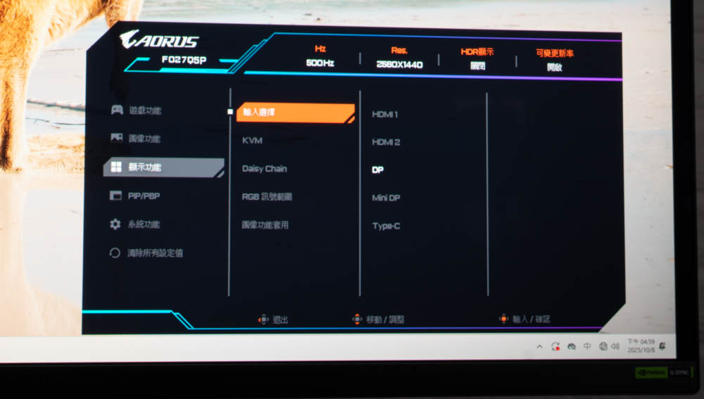 在顯示功能方面,玩家可以自由切換輸入來源,包括 DisplayPort、HDMI、Type-C 等接口,此外,螢幕還支援 KVM 功能、Daisy Chain 串接,以及 RGB 範圍調整,方便依照個人需求或工作環境進行最佳化設定。