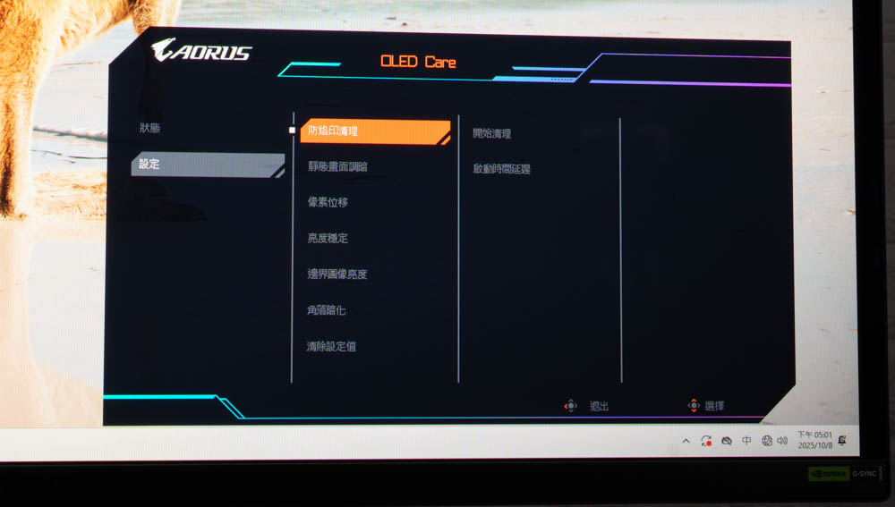 AORUS FO27Q5P 還內建多項面板保護與畫質維護功能,包括防烙印清理、像素位移、亮度穩定,以及 靜態畫面自動調暗等,有效延長 OLED 面板使用壽命。