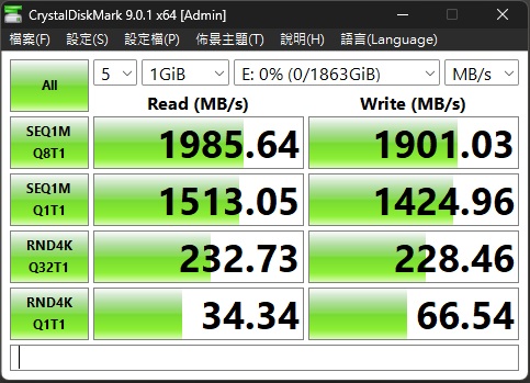 ↑ CrystalDiskMark – USB 3.2 Gen 2×2 Type-C。