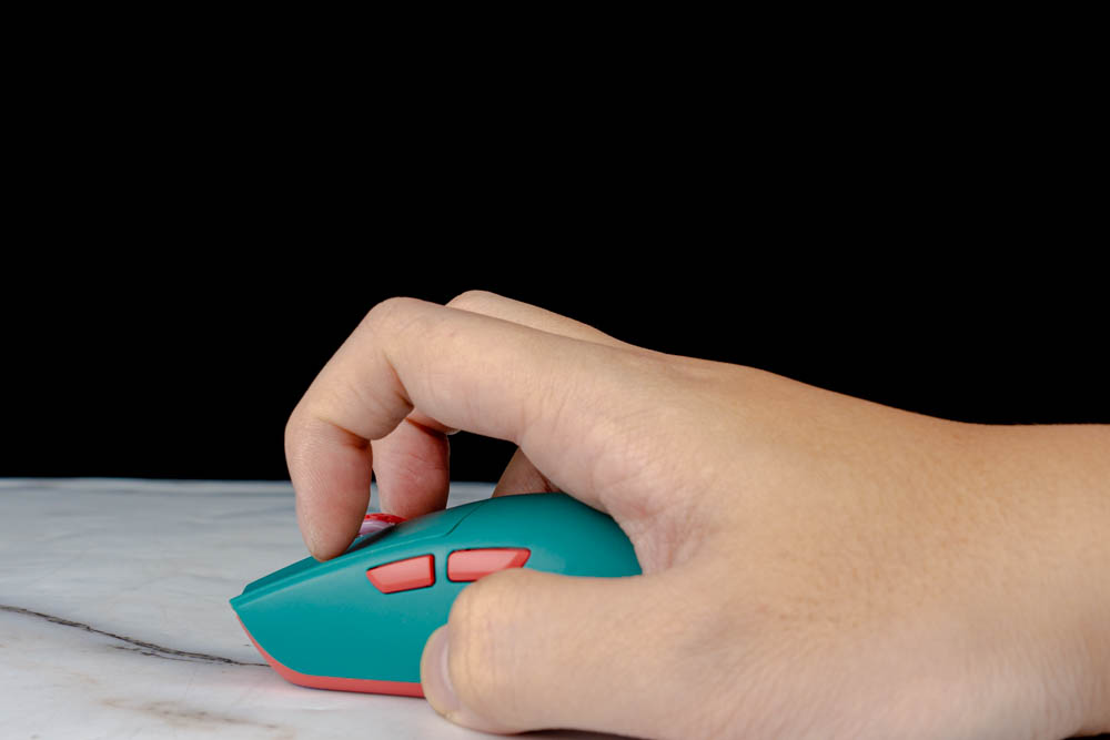 小編的手偏大,在實際使用這顆滑鼠時,多半會以抓握或指握的方式來操控;而如果是手偏小的使用者,這顆滑鼠的中小型尺寸相當友善,無論是趴握、抓握或指握都能輕鬆找到適合的握姿。整體來說,滑鼠的體積與弧度設計對不同手型的適應性都不錯,使用起來相當靈活舒適。