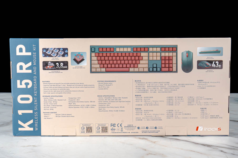 輕巧安靜、三模連線敲方便 ! iRocks K105RP 無線靜音鍵盤滑鼠組開箱